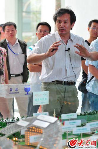 黃鳴為采訪團(tuán)講解“中國太陽城”的規(guī)劃