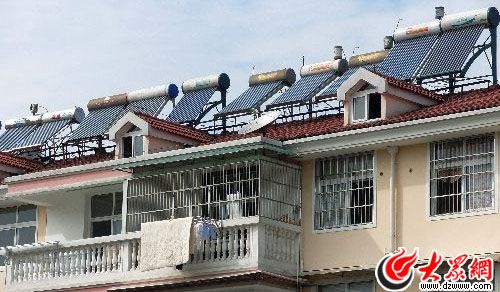 剛進(jìn)德州城區(qū),我們便發(fā)現(xiàn)一個非常有趣的現(xiàn)象——道路兩旁的樓房屋頂上密密麻麻安裝了許多太陽能熱水器。并且越接近太陽谷,各居民樓上的太陽能采光板便越多。據(jù)介紹,太陽能熱水器在老城區(qū)的普及使用率已達(dá)90%,新城區(qū)幾萬戶幾乎達(dá)到了100%。