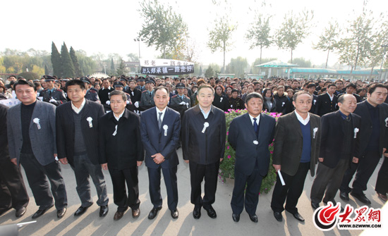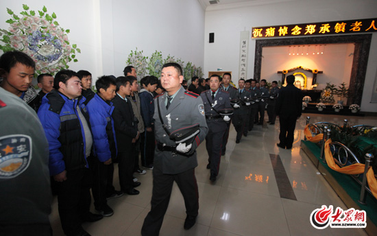 社會各界近千名群眾自發組織起來為鄭承鎮送別。濟南市相關部門領導在遺體告別儀式以前,組織了簡短的悼念儀式。(曹亮 攝)