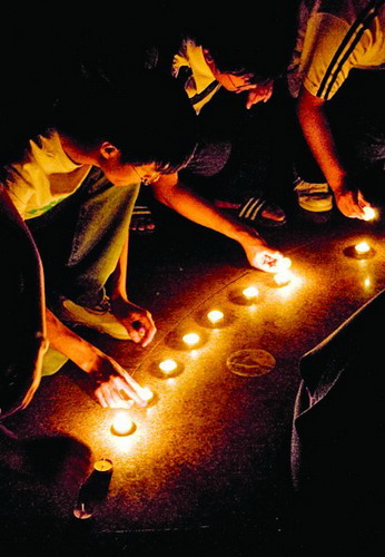 于是學(xué)生們輕輕地走到蠟燭的外圍,每個人都安靜地守著,蠟燭繼續(xù)燃起。