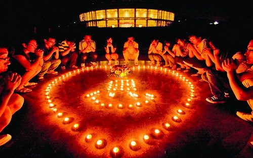 大學(xué)生燭光悼念遇難飛行員馮思廣