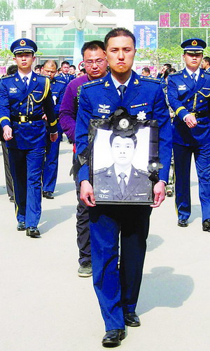5月12日,濟(jì)空航空兵某師官兵為馮思廣烈士送行。新華社發(fā)