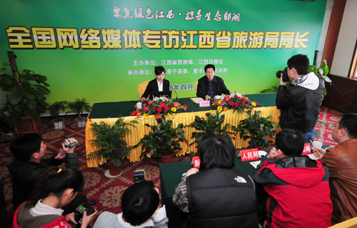 大眾網訊 記者陶云江報道 隨著鄱陽湖生態經濟區正式上升為國家戰略和上海世博會的日益臨近,江西省對鄱陽湖生態經濟區旅游業發展的構想及如何對接世博旅游,成為眾多媒體關注的焦點。4月9日,江西省旅游局局長王曉峰就鄱陽湖生態經濟區旅游資源開發及江西省對接世博旅游等相關問題接受了來自全國各地40余家知名網絡媒體的專訪。