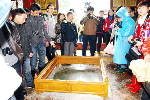 上清宮在江西省鷹潭市南貴溪縣境內的龍虎山中上清鎮東首。初為天師張道陵的草堂,第四代天師張盛在此置傳箓壇,逢三元日升壇傳箓。唐代會昌年間(841--846)始于此處建真仙觀,宋大中祥符五年(1012)改名上清觀,仁宗天圣年間(1023一1032),二十五代天師張乾曜曾觀于龍虎山南。元代曾有三建二毀,武宗時敕改上清正一宮為“大上清正一萬壽宮”。明代先后有六次重建與修復及增建。清代康熙五十二年(1713),圣祖曾煬帑金修葺;雍正九年(1731)特賜帑銀十萬兩,遣翰林學士占留保,原直隸臬司浦文焯等督工,又命天師府署理大真人張匿昭麟協同監修,于當年大興土木,開始重修,至雍正十年八月竣工,除將原有殿宇葺修一新外,又新建了碑亭、斗姆宮、后堂、庫房、廂房、齋堂、廚房、虛靖祠及二十四道院等,整個宮宇規模宏大,氣勢磅礴,名振江南;后因年久失修與屢遭災毀,至解放初僅存門樓、午朝門、鐘樓、下馬亭、東隱院等建筑,為江西省重點文物保護單位之一。“文革”中,上清宮殘存建筑全遭毀壞,現唯存有一口元代所鑄大鐘及部分碑刻藏于天師府內。為龍虎山歷史上著名的道教宮觀之一,是道教正一道的祖庭。