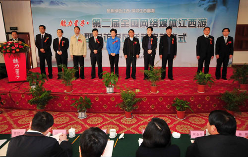 大眾網(wǎng)訊(記者陶云江)4月9日14時(shí)整,由江西省旅游局和江西日?qǐng)?bào)社聯(lián)合主辦的“聚焦綠色江西?探尋生態(tài)鄱湖——第二屆全國(guó)網(wǎng)絡(luò)媒體江西游”大型采風(fēng)活動(dòng)在依山傍水,風(fēng)景秀麗的星子縣正式啟動(dòng)。來(lái)自全國(guó)及地方的40余家知名網(wǎng)絡(luò)媒體記者齊聚一堂,他們將深入鄱陽(yáng)湖生態(tài)旅游區(qū)及江西省內(nèi)知名景區(qū)進(jìn)行采訪采風(fēng),感受魅力江西、生態(tài)江西。