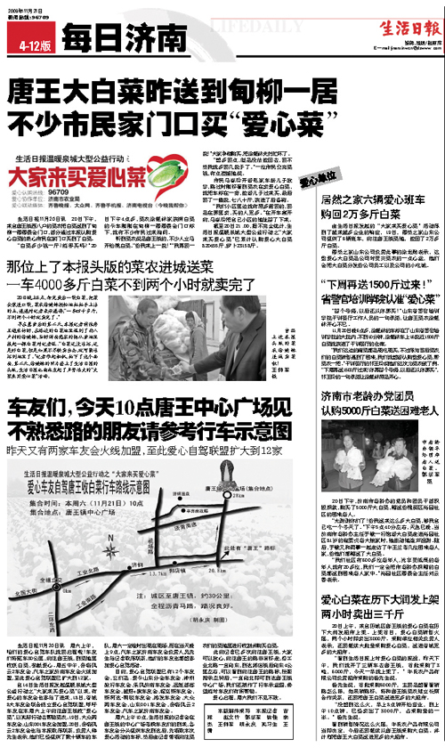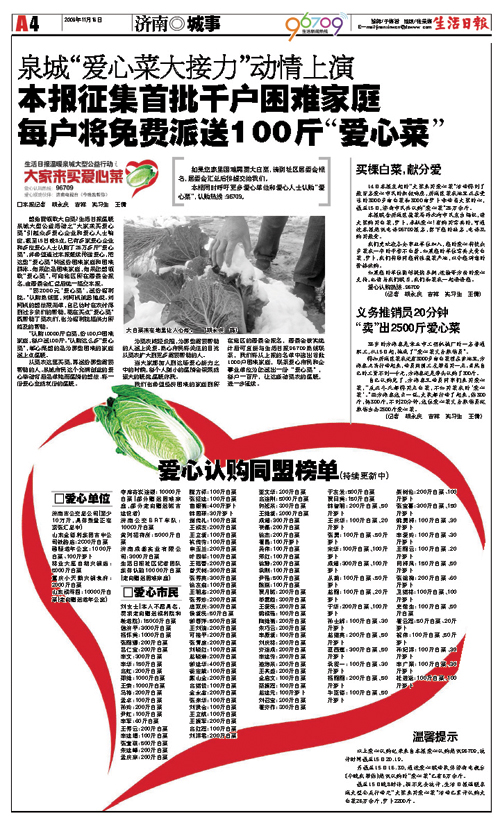 生活日報《“大家來買愛心菜”》大型服務報道 (生活日報記者:胡永慶、吉祥等 生活日報編輯:濟南新聞編輯室、要聞編輯室)