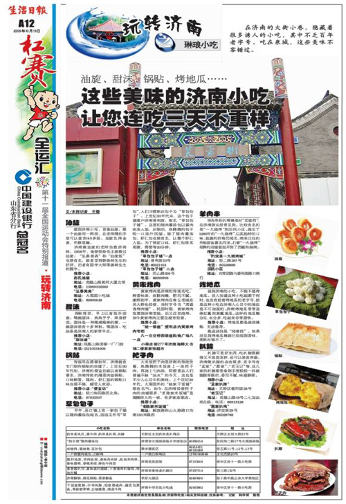 生活日報 《玩轉濟南》專題報道 (記者:殷寶龍、秦娟、王蕾、郭學軍、李麗、尹玉濤、趙國陸 編輯:李可可、金中麗、彭茜)
