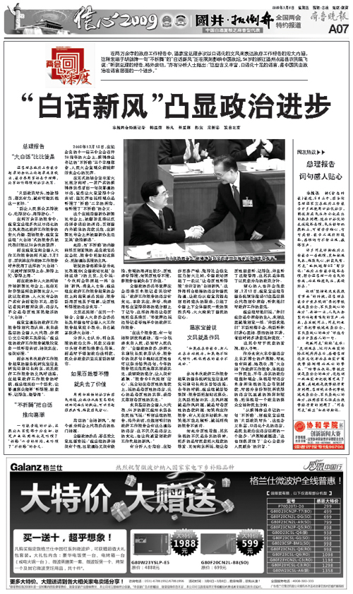 《“白話新風”凸顯政治進步》等全國兩會深度系列報道 (齊魯晚報記者:溫濤、彭東、郭靜、楊珂、楊凡、韓適南、楊凡、仲愛梅、彭東、常新喜、石念軍、張子森 齊魯晚報編輯:呂冰)
