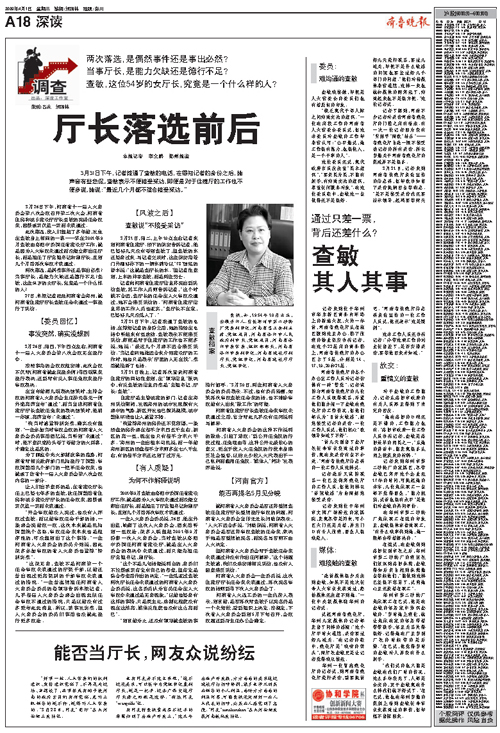 《廳長落選前后》 (齊魯晚報記者:李文鵬、劉國林  齊魯晚報編輯:劉國林、呂冰)