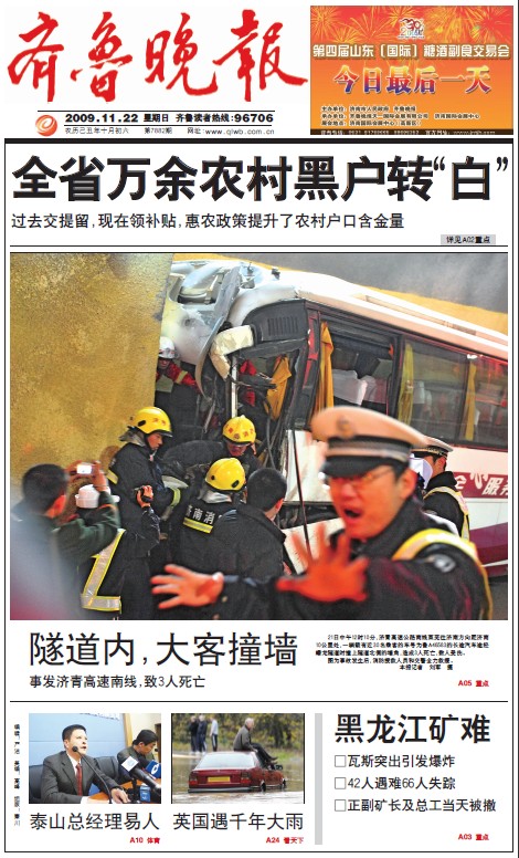 銀獎:《隧道內,大客撞墻》 (齊魯晚報 記者:劉軍 編輯:嚴潔、彭傳剛)