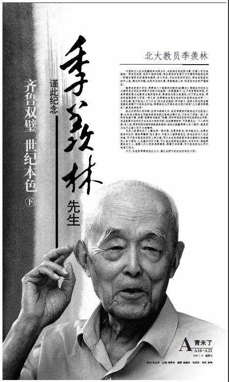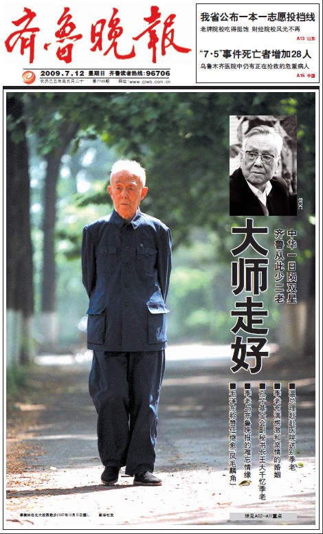 季羨林、任繼愈,兩位大師是山東的,也是全國的。二老同時仙逝,多少個版面也表達不了我們的哀思。我們的情感表達、價值追求,盡在其中矣。