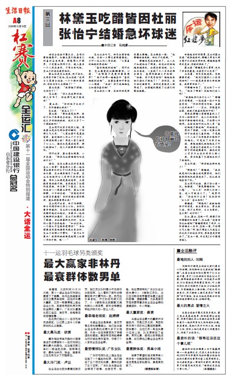 生活日?qǐng)?bào)《全運(yùn)紅樓夢(mèng)》 (記者:馬純?yōu)t 編輯:李琳、尹燕燕)
