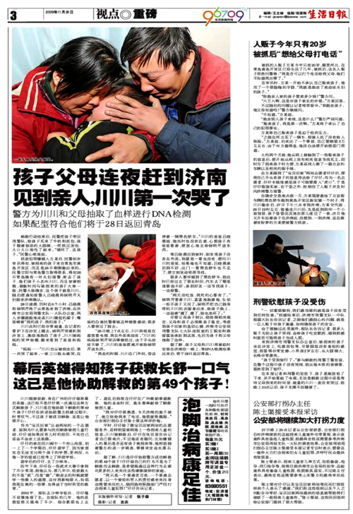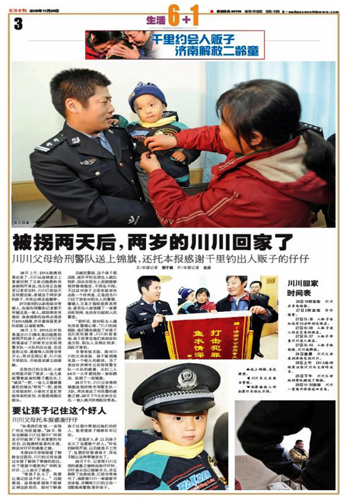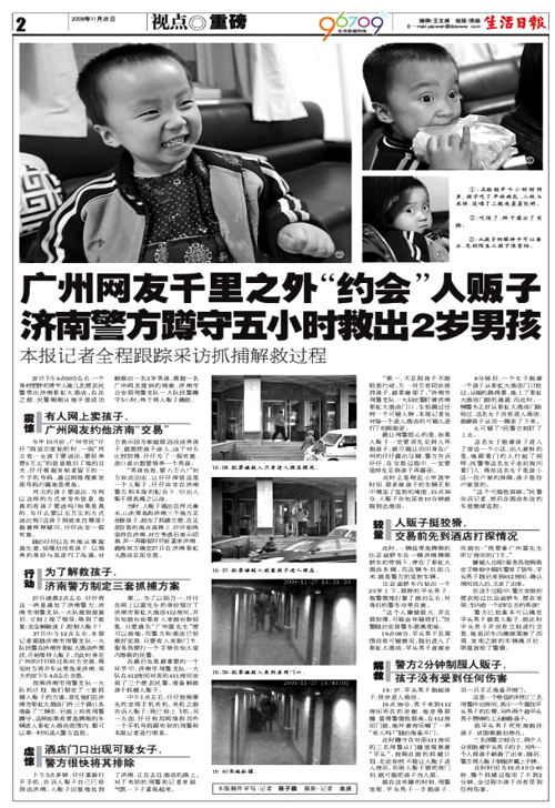 《廣州網友千里之外“約會”人販子 濟南警方蹲守五小時救出2歲男孩》(記者:張子森、左慶 編輯:李海、王文娟)