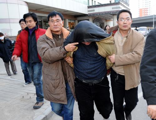 記者采訪犯罪嫌疑人被帶離犯罪現場