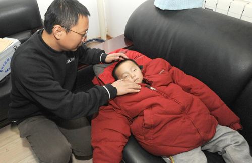 生活日報記者左慶為熟睡中的被解救兒童蓋上衣物。