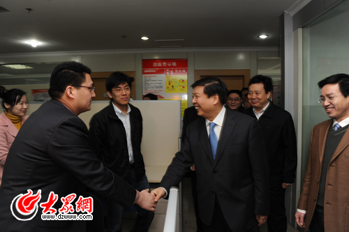姜大明省長視察大眾網,與大眾網編輯親切握手。大眾日報記者 湯序民攝