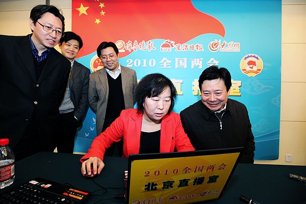 大眾網(wǎng)北京3月11日訊 今天下午,省委常委、宣傳部長李群專程趕到出席十一屆全國人大三次會議的山東代表團(tuán)住地,親切看望報道全國“兩會”的山東新聞工作者。 今年的全國“兩會”備受關(guān)注。我省各新聞單位紛紛抽調(diào)精兵強(qiáng)將,派出強(qiáng)大報道陣容,拿出大量版面和時段,全力報道全國“兩會”新聞。 李群看望慰問了大眾報業(yè)集團(tuán)、山東人民廣播電臺、山東電視臺的記者。李群先后來到山東人民廣播電臺、山東電視臺、“兩報一網(wǎng)”(齊魯晚報、生活日報、大眾網(wǎng))北京直播室,關(guān)切地詢問他們的工作和生活情況。 在“兩報一網(wǎng)”北京直播室,李群部長還登錄了自己的大眾網(wǎng)眾眾微博(http://zz.dzwww.com/836630),仔細(xì)瀏覽博友們的回復(fù)和留言,看到這么多網(wǎng)友關(guān)心山東的文化創(chuàng)意產(chǎn)業(yè),他立即現(xiàn)場發(fā)布了一篇微博:“文化建設(shè)再次成為這次全國“兩會”的熱議話題之一,山東文化建設(shè)大有希望。脖子們,加油!!” 發(fā)表完微博,李群又關(guān)切地問起大眾網(wǎng)此次兩會報道的情況,尤其是對姜大明省長回答大眾網(wǎng)友十問的部分,他非常感興趣,點(diǎn)開頁面認(rèn)真地看了起來,一邊看一邊關(guān)切地詢問:“有文字報道,有沒有視頻呢 ?”看到稿子里不但有視頻,而且視頻還打上了字幕,李群很高興,對身邊的記者說,“你們的工作很細(xì)致啊。” 在隨后與記者們座談時,李群充分肯定了山東新聞工作者的工作,他說,山東各媒體對全國“兩會”的宣傳報道基調(diào)把握得好,導(dǎo)向正確。幾天來,山東各媒體的新聞工作者們不辭辛苦,深入采訪,特別是在人手少、時間緊、任務(wù)重的情況下,克服了很多困難,出色地完成了報道任務(wù),讓家鄉(xiāng)人民及時看到了全國"兩會"的盛況和山東代表、委員們積極建言獻(xiàn)策的風(fēng)采。實(shí)踐再次證明,山東的新聞工作者是一支特別能吃苦、特別能戰(zhàn)斗,政治上過硬、業(yè)務(wù)上精良的優(yōu)秀隊(duì)伍。