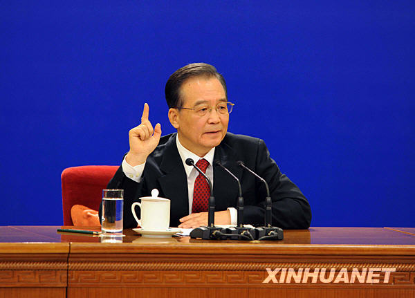 3月14日,國務院總理溫家寶在北京人民大會堂與中外記者見面,并回答記者提問。 新華社記者陳樹根攝