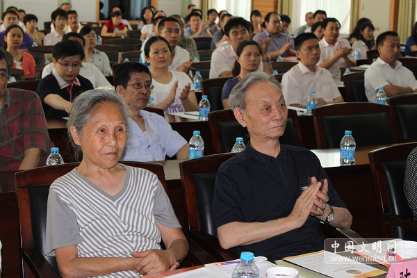 2010年6月10日,陳榮超(前排右一)及夫人(前排右二)出席出席北京市豐臺區道德模范巡講展示活動啟動儀式。中國文明網 鄧植尹 攝 【觀看視頻】