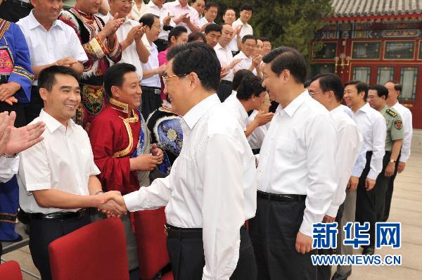 6月30日,中共中央在北京中南海懷仁堂召開深入開展創建先進基層黨組織、爭當優秀共產黨員活動座談會。會前,胡錦濤、習近平、賀國強等中央領導同志親切會見全國先進基層黨組織和優秀共產黨員代表。新華社記者黃敬文攝