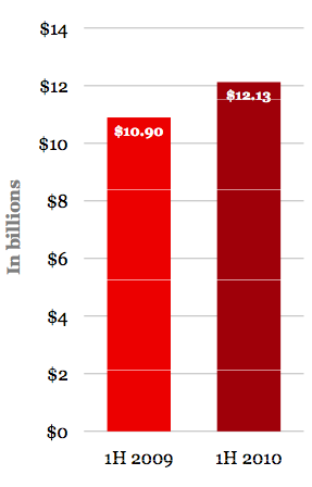 該報(bào)告還披露了以下數(shù)據(jù)(所有數(shù)字均為2010年上半年數(shù)字):