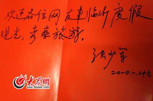 采訪結(jié)束時,張少軍高興地為大眾網(wǎng)各地網(wǎng)友留言:“歡迎各位網(wǎng)友來臨沂度假觀光、考察旅游”。