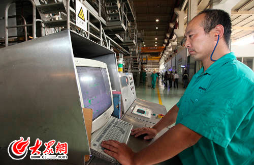 亞太森運轉博紙漿有限公司的工人正在操作電腦設備控制機車。大眾網記者 曹亮 攝
