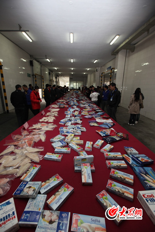 網(wǎng)絡(luò)媒體記者瀏覽琳瑯滿目的東方海洋產(chǎn)品