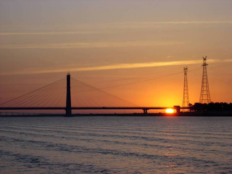 1985年12月開工,1987年10月1日建成通車。榮獲中國建筑業(yè)聯(lián)合會頒發(fā)的“魯班獎”。勝利黃河大橋是中國第一座雙鋼箱式斜拉公路橋,也是黃河下游的最后一座橋梁,橋名由原全國人大副委員會楚圖南題寫。夕陽西下,可看到“長河落日圓”的美景。
