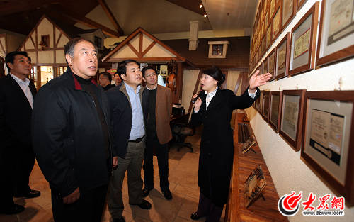 25日,采訪團參觀訪問張裕國際葡萄酒城,感受濃厚的張裕酒文化。省網絡文化辦公室主任劉致福,煙臺市委常委、宣傳部長劉延林陪同采訪。大眾網記者 曹亮 攝