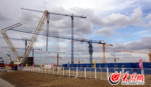 正在建設中的海陽山東核電工程現場,塔吊林立。大眾網記者 曹亮 攝