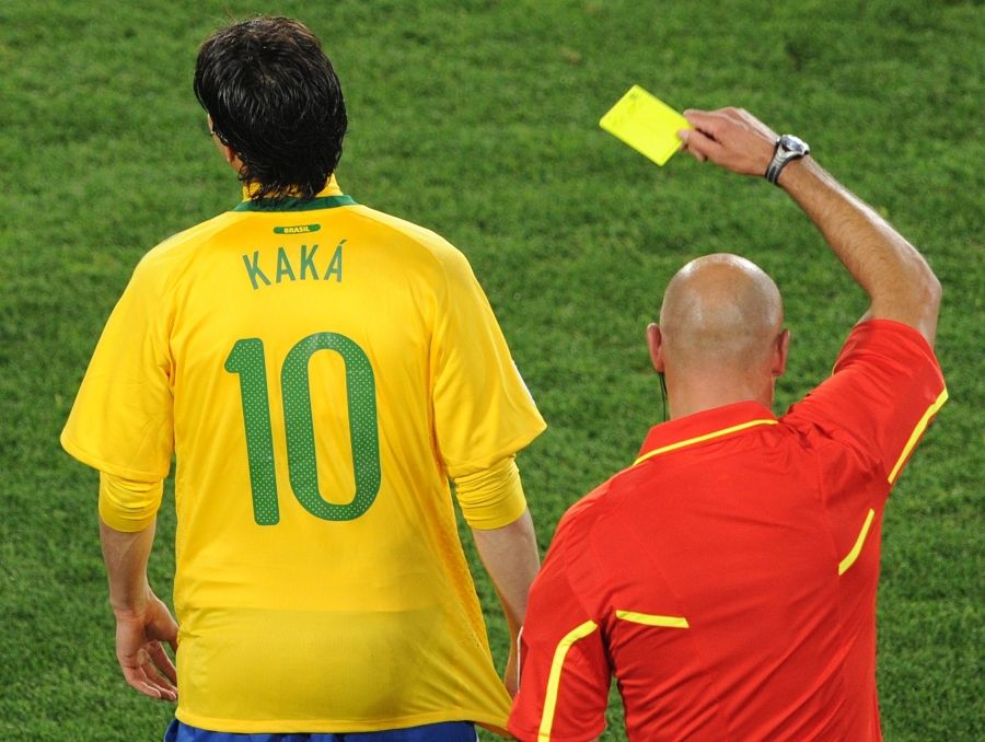 巴西與智力的八分之一決賽第29分鐘,卡卡絆倒智力8號球員比達爾吃到本屆世界杯個人第三張黃牌。這使得卡卡在球員黃牌榜上與盧科維奇并列榜首,而卡卡也憑借著本場新添的一個助攻在球員助攻次數排名第一。盡管國際足聯在本屆世界杯上采取1/4決賽后清除黃牌的新政策,但是卡卡仍然存在第二度停賽的隱患。