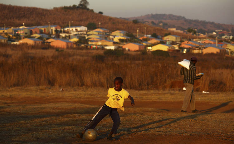 6月7日,一名南非兒童在約翰內斯堡的一片空地上踢球。2010年世界杯將于6月11日在此揭幕。新華社/路透