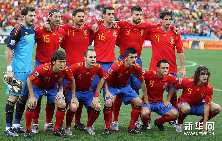 圖為6月16日,西班牙隊首發球員在比賽前合影。當日,在德班舉行的2010年南非世界杯足球賽H組首輪比賽中,西班牙隊以0比1不敵瑞士隊。新華社發