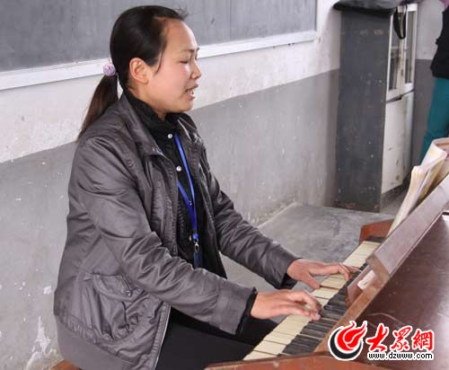 除了校舍緊張外,夏蔚鎮中心小學的教學設施也十分匱乏,記者旁聽了學校的一堂音樂課,老師伴奏用的竟是上世紀80年代出廠的腳踏琴,琴身上的油漆已經斑駁脫落,琴鍵的顏色也已非常古舊。即使這樣,伴著腳踏琴發出的音樂聲,孩子們依然唱得非常認真。學校的音樂老師許麗娟告訴記者,她的學生中有很多有音樂天賦的孩子,但苦于沒有必要器材,很難對他們進行培養。