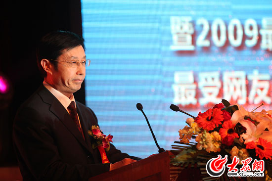 大眾報業集團社長許衍剛出席“2010新媒體品牌傳播論壇”暨2009最受網友尊敬的山東企業公民、最受網友信賴的山東消費品牌頒獎典禮并致辭。