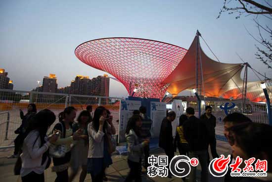 大眾網-移動G3上海4月30日聯合報道(特派記者 馮煒程 吳哲)晚上7點左右,大眾網記者在世博園6號門門口看到,大批游客正在此聚集,因為6號門正對中國國家館,所以很多攝影愛好者早早準備好設備拍攝,記者注意到,此處的地鐵出入口幾乎一直在有游客走出,來自浙江的游客王輝告訴記者,他想早早看一下世博館,明天開幕后也會第一時間進園。