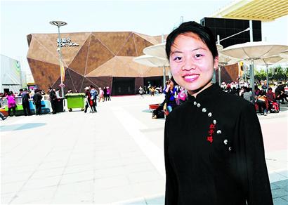 荊楚網消息 (楚天都市報) 圖為:能服務世博,襄樊女孩余小雪很快樂 記者佟建國攝