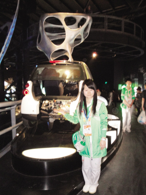 來(lái)自天津科技大學(xué)的張然在城市地球館內(nèi)服務(wù),他告訴記者,地球館向參觀者展示的是環(huán)境問(wèn)題,站在12米高的“意識(shí)之橋”上俯視腳下巨型的“球冠”型屏幕,警示人們關(guān)注環(huán)境保護(hù)和可持續(xù)發(fā)展的重要性。昨天上午,張然主要為游客解說(shuō)一輛名為“smart(聰明)”的環(huán)保節(jié)能概念小車(chē),“這輛小車(chē)使用電力驅(qū)動(dòng),充電10小時(shí)即可連續(xù)無(wú)污染行駛135公里,這輛小車(chē)也代表了未來(lái)汽車(chē)的發(fā)展趨勢(shì)。”聽(tīng)完張然的介紹,游客聽(tīng)們頻頻點(diǎn)頭。