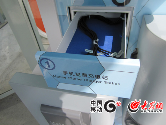 自助服務機還可以為中國移動的手機用戶解決手機充值、充電等緊急服務。來自義烏的洪先生選擇了移動自助機的“充電”服務。記者在現場看到,自助機下方的一個標有“手機免費充電站”的小抽屜緩緩開啟,里面存放著各種型號手機的充電插頭。洪先生只需要尋找相匹配的插頭,插入手機,并把手機存放入這個小抽屜既可。小抽屜緩緩關閉后,洪先生得到一個密碼憑條:“等手機充好電以后,我通過密碼就可以取回自己的手機,安全又方便。”需要給手機充值的游客,也可以通過自助機語言提示購買繳費卡,給手機充值。