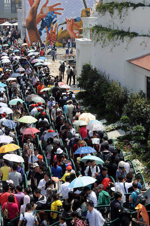 5月1日,游客排隊(duì)等候參觀泰國館。當(dāng)日是上海世博園正式開園第一天,參觀者從浦東、浦西10多個(gè)出入口進(jìn)入園區(qū),世博園區(qū)內(nèi)游人如潮。新華社記者王頌攝