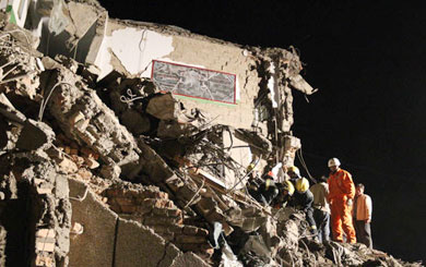 碎玻璃、屋頂上的磚瓦、從高處等掉下來砸在身上是很危險的。此外,水泥預制板墻、自動售貨機等也有倒塌的危險。