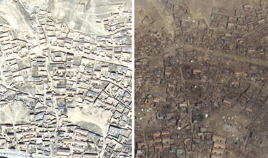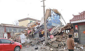 當大地劇烈搖晃,站立不穩的時候,人們都會有扶靠、抓住什么的心理。身邊的門柱、墻壁大多會成為扶靠的對象,但是,這些看上去挺結實牢固的東西,實際上是很為危險的。在繁華街、樓區,最危險的是玻璃窗、廣告牌等物落下來砸傷人,注意用手或手提包等物保護好頭部。在樓區時,根據情況,進入建筑物中躲避反而更安全。