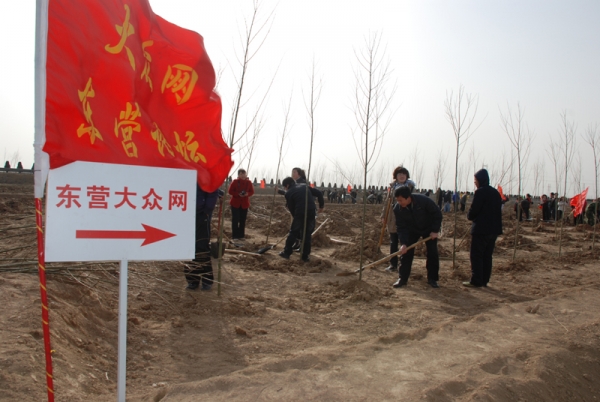 12日上午,大眾網東營論壇網友義務植樹活動在東營區六戶鎮東青高速公路義務植樹點舉行。現場種植美國竹柳1000多株,進一步改善了生態環境。