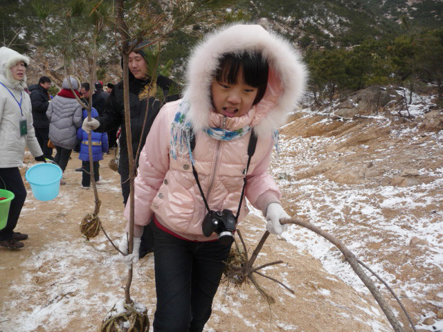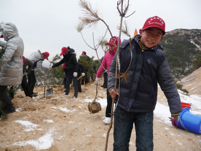 3月6日,一群小朋友們在父母的指導下到日照河山上植樹。當日由大眾網組織發起的全省萬名網友義務植樹日照站活動舉行,三百多名網友共栽下了4000余棵樹苗。