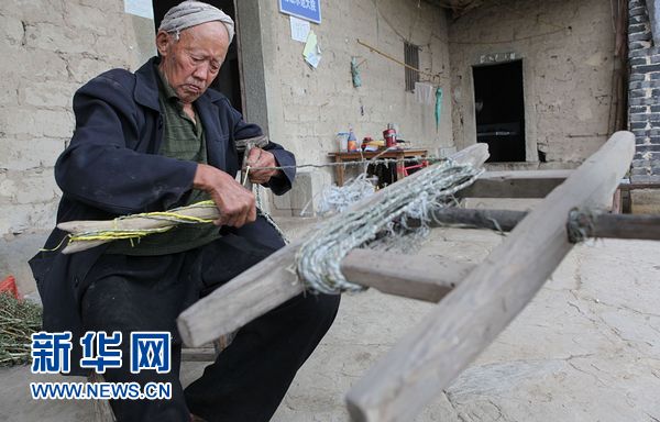 6月7日,在重慶云陽縣黃石鎮老屋村,黃先春在編草繩。新華社發(劉洋 攝)