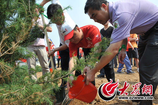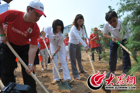 志愿者李兵(左)、孟建偉(右) 共同栽種安利樹