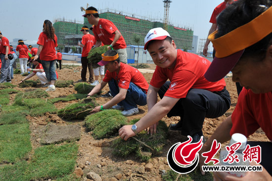 志愿者王海軍和奧運(yùn)冠軍杜麗一起植樹