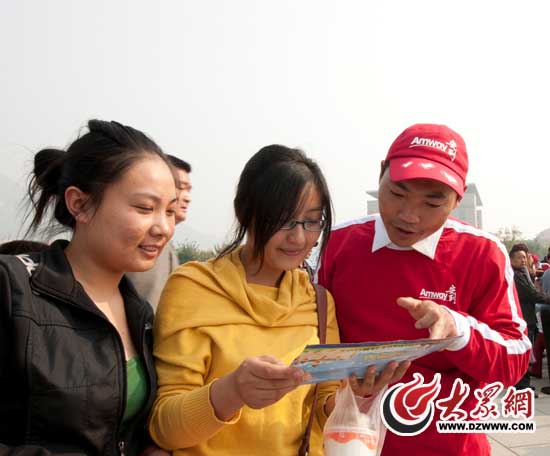 安利環(huán)保嘉年華泰安站活動安利志愿者張偉國為參與活動的市民介紹游戲規(guī)則
