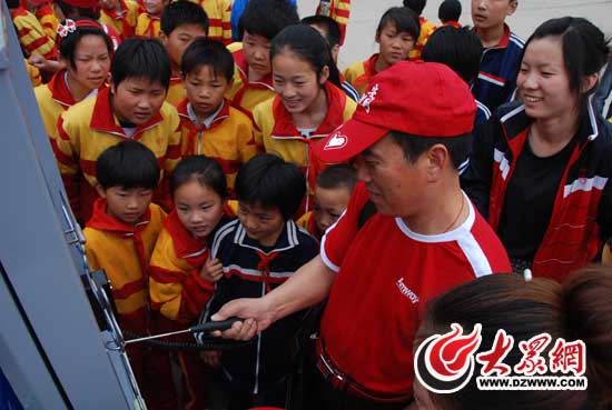 濟寧安利志愿者張峰向留守兒童演示科學道具